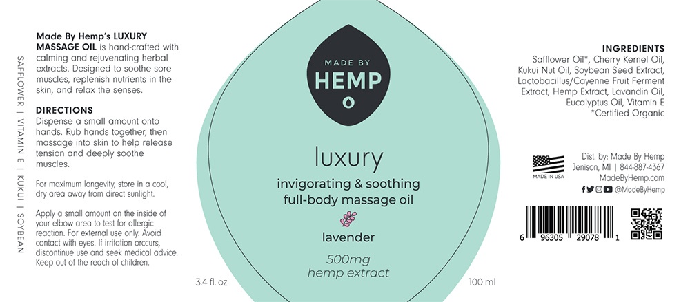 Made By Hemp’s Luxury CBD Massage Oil is hand-crafted with calming and rejuvenating herbal extracts for a premium full-body massage experience. This unique formulation is designed to soothe sore muscles, replenish nutrients in the skin, and relax the senses.