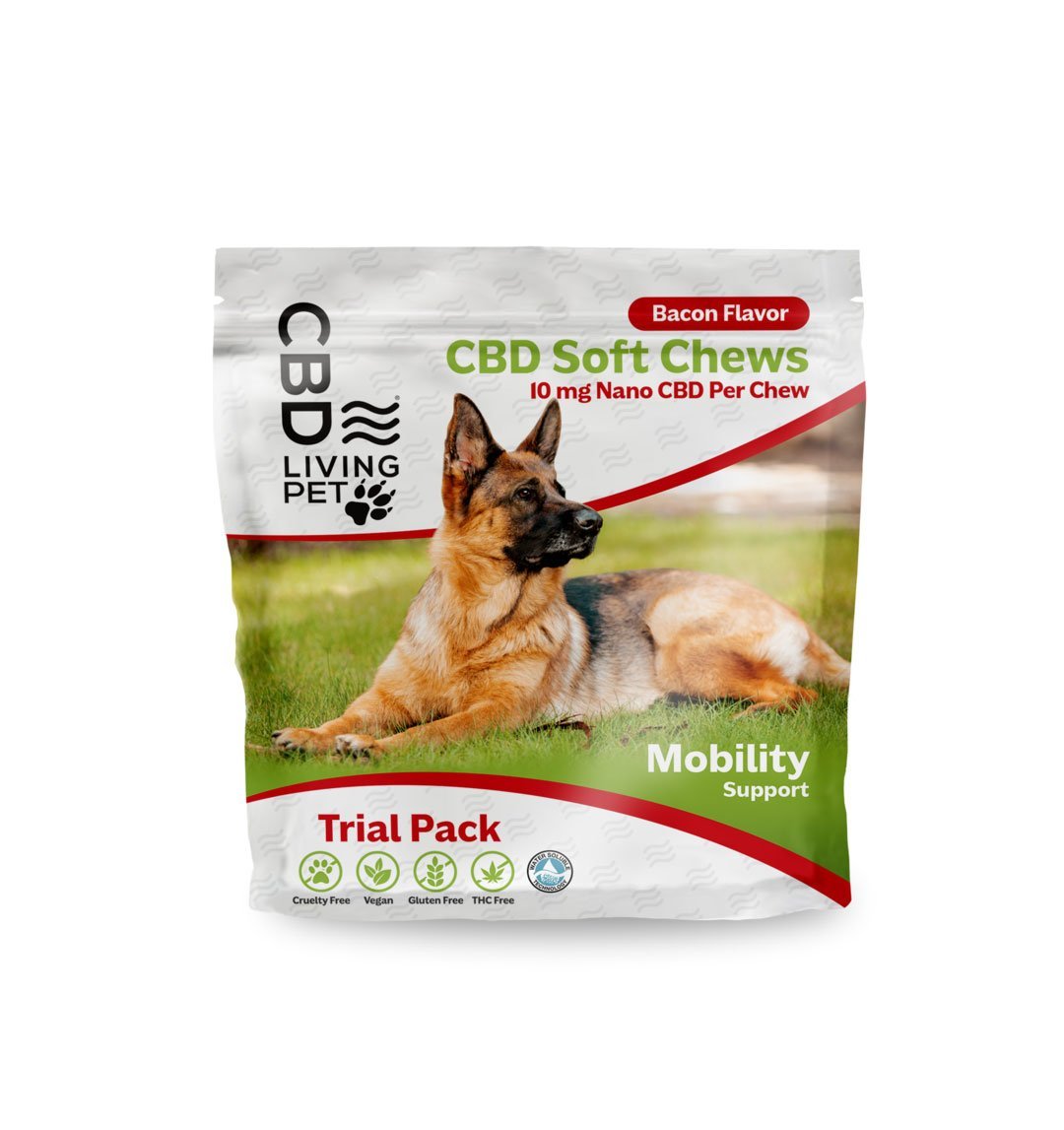 As your pup ages, he can begin to experience hip and joint pain. Give him some relief with CBD Living Pet Mobility Support CBD Soft Chews, which combine CBD, prebiotics, probiotics, and enzymes with a delicious bacon flavor your dog will crave. Each treat contains 10 mg CBD. Suitable for all canines.