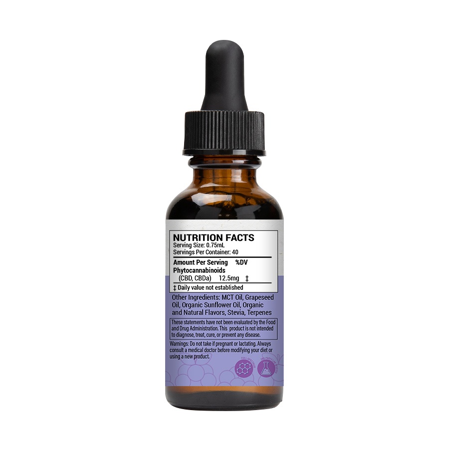 Ingredients: Raw Hemp Oil, MCT Oil, Grapeseed Oil, Organic Sunflower Oil, Organic and Natural Flavors, Stevia, Terpenes